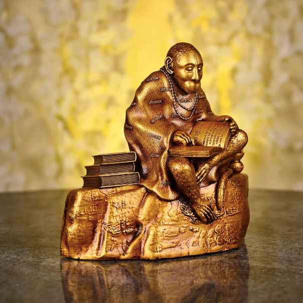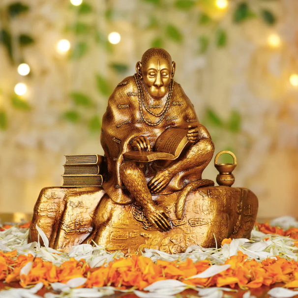 Elegance meets spirituality in the form of our Ramayani Hanuman Ji idol from Grandia. Crafted to perfection, this masterpiece captures the essence of Lord Hanuman in a quiet moment of contemplation while sitting on a stone pedestal engaged in reciting the holy Ramayana. Thus, this iconic sculpture is more than just art; It symbolizes devotion and peace.